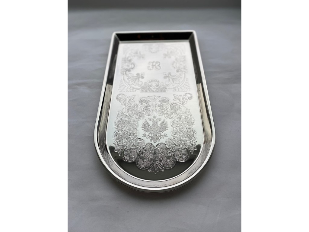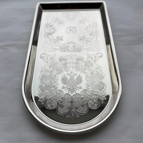 Поднос чайный никелированный "Герб РФ"(29x16см)